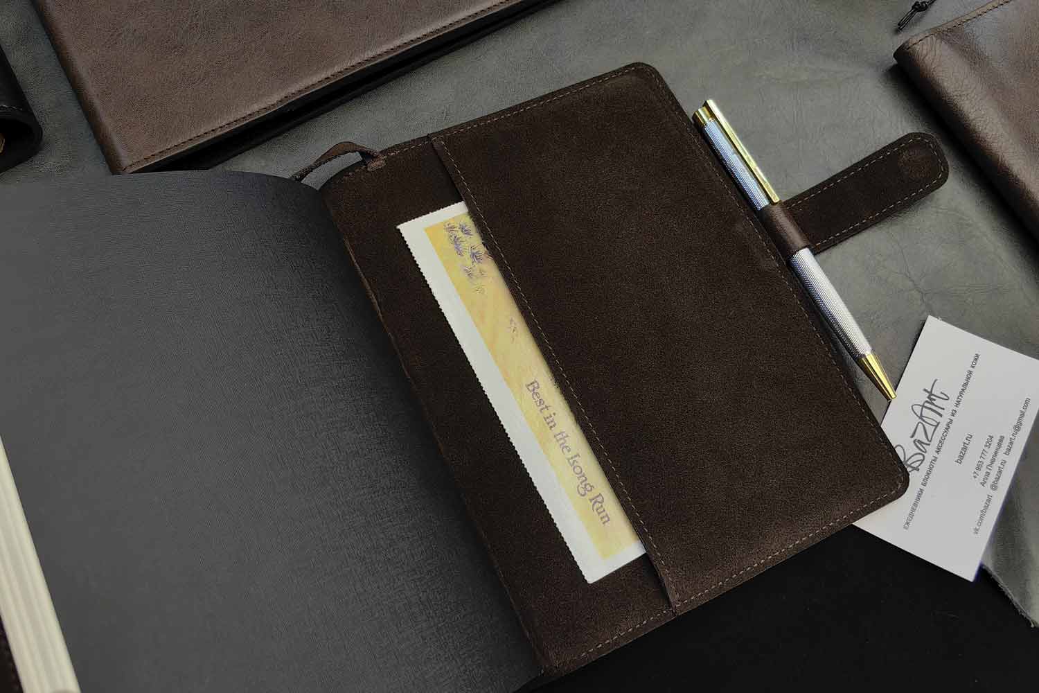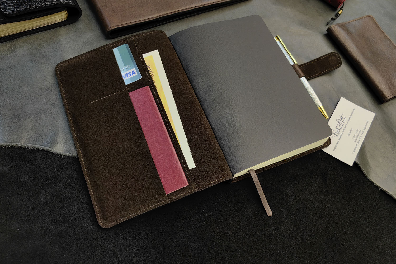 Внутри карманы для бумаг и визиток.