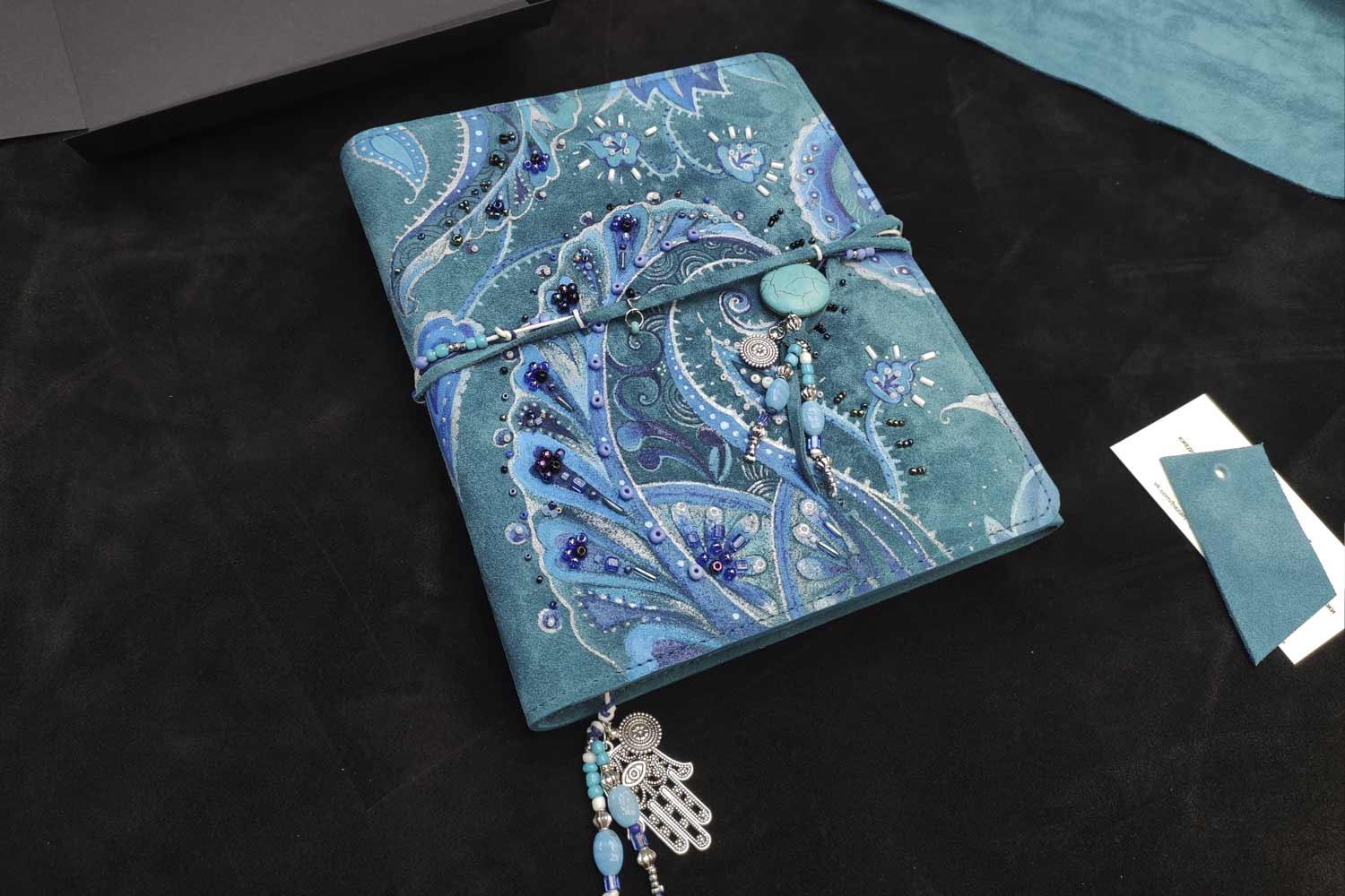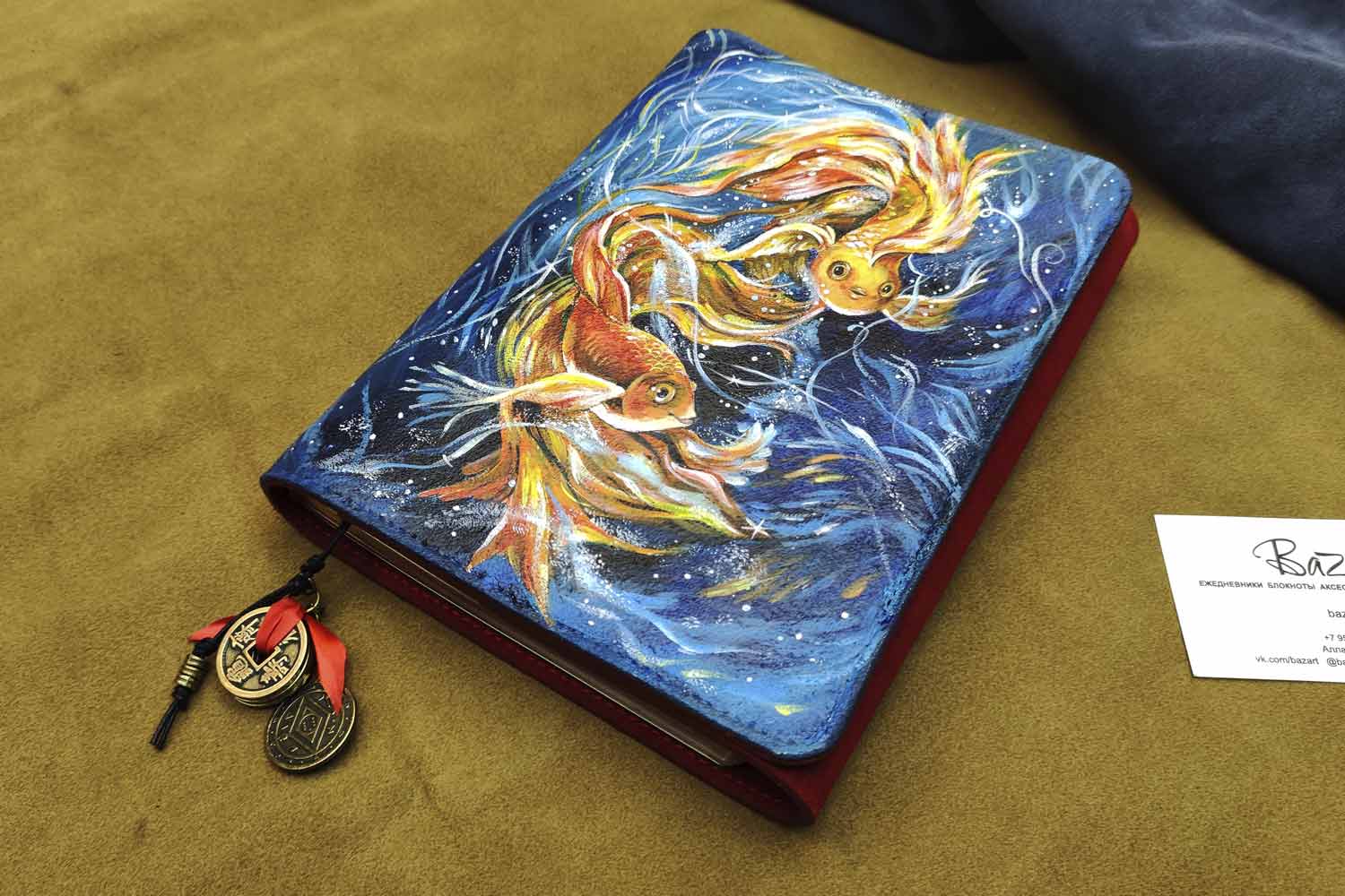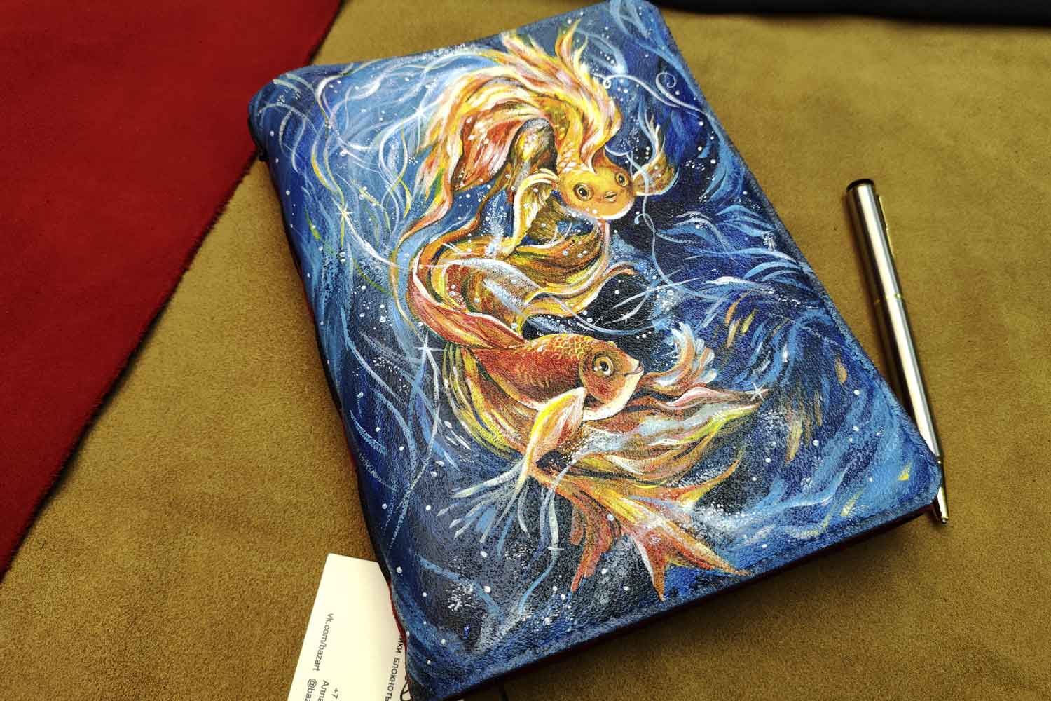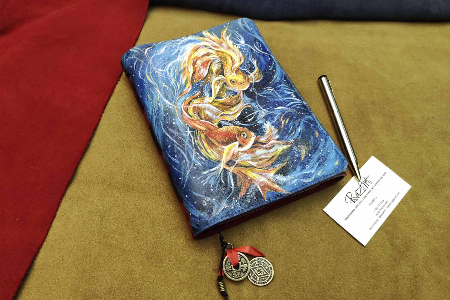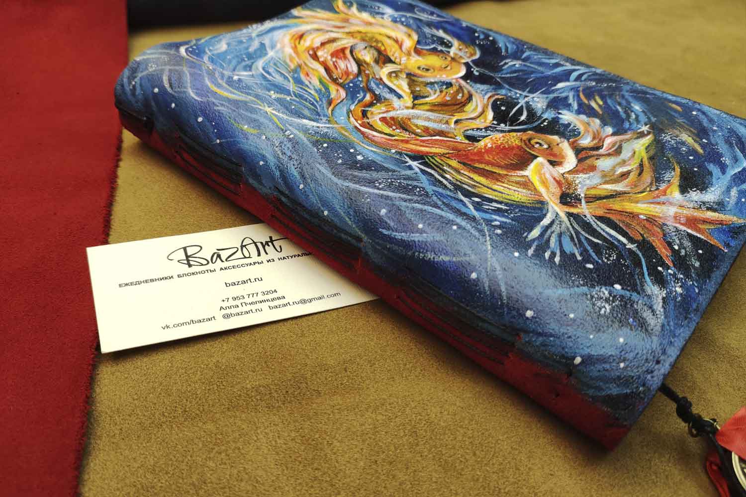 Ежедневник из красной и синей замши, с ручной росписью. Формат А5.